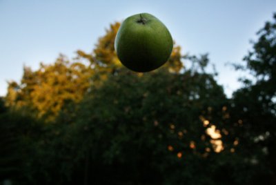 Wir waren nur eine Viertelstunde alleine daheim, das Obst, der Fotoapparat und ich. Normalerweise spielt man ja mit Essen nicht. (Die Äpfel sehen jetzt nicht mehr ganz so gesund aus. Manche Dinge halten es doch nicht so gut aus, wenn man sie immer wieder auf die Tischplatte fallen lässt.)