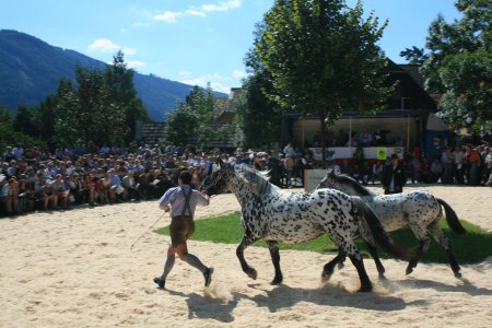 Vormittag: Rösslmarkt in Mauterndorf. Das ist eine Attraktion.. der Pferdemarkt findet einmal im Jahr am Vormittag statt. Das Ganze ist mit einem großen Markt verbunden, mit inzwischen demselben Mist wie überall (Sonnenbrillen, Autowaschmittel, kläffende Batterieplüschhunde) aber manchmal ist der ein oder andere Privatmensch dazwischen, der seinen Käse oder Speck verkauft. Und es gibt mehr und andere Süßigkeiten, wie Berge von Schaumrollen. Der Höhepunkt des Fests ist eine Fohlenauktion.