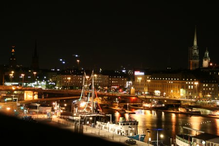 Eine schwedische Hauptstadt, Blick auf Gamla Stan, stativlos auf Mauer (siehe linke untere Ecke)