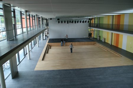 Probesitzen in der Mensa. Da viel Platz haben wir dort wohl nie wieder. Aber nett ist es schon. Insgeheim müchen wir ja einen Stammtisch mit Stammtischschild und karierter Tischdecke. Mal sehen, ob sich das einrichten lässt – wahrscheinlich eher nicht.
