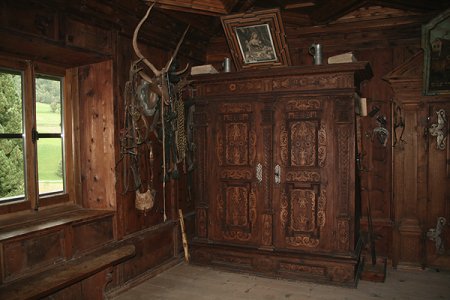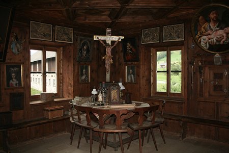 Eine Zirbenstube, exklusive Fotos vom Tag der offenen Zirbenstubentür auf einem Erbbauernhof im sagenumwobenen Lungoland vor etwas über einem Jahr. Ein sehr kostbares Ding, praktisch ausschließlich aus Zirbenholz, das überhaupt nur ab und zu aufgesperrt wird. Benutzt wird so ein Raum nicht mehr. Hier gilt der Grundsatz „Wir schauen mit den Augen!“ allerdings, riechen kann darf man: Und Zirbenholz richt nun mal sehr gut.
