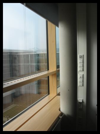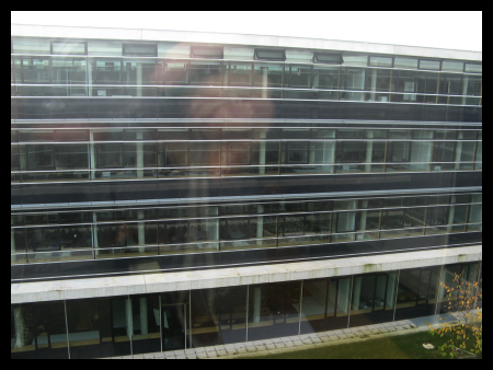 Blick aus dem Fenster. Die Spiegelung war leider nicht zu Vermeiden aaaber man konnte vom Fenster aus das Olympiagelänge sehen. Unter anderem.