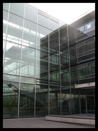Gestern war ich in der Städtischen Berufsschule für Medienberufe in München, Eröffnung 2007. Und, ähem.