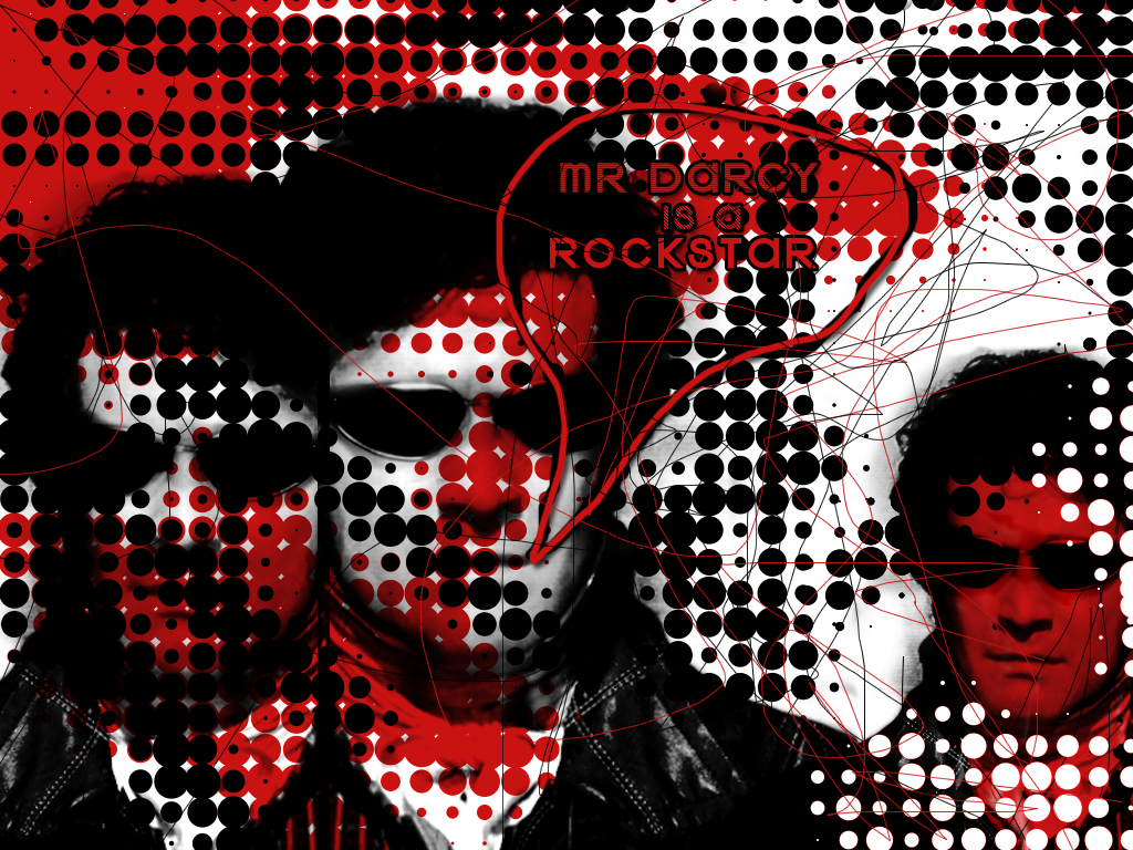 Gestern war mir dann sehr langweilig. Heraus kam, dass Mr Darcy ein Rockstar ist. Das darf man jetzt nicht so ernst nehmen. Das ist eine Anspielung auf die Darcyfans und außerdem ist das Wort „Rockstar“ auch nicht mehr das, was es einmal war. Es gibt sogar einen Webring „for pages that rock“, jedes Mitglied hat dann ein Bild mit „I’m a rockstar“ auf seiner Seite. Sehr originell. Jedenfalls ist Mr Darcy auch ein Rockstar. :) Ein bisschen manipuliert ist da schon, die Sonnenbrille war eigentlich da nicht und die Jacke ist auch verändert.