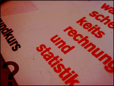 Bin jetzt beim Stochastiklernen. Viel, viel besser, weil Stochastik viel unterhaltsamer ist. Alleine die Aufgabenstellungen sind sympathischer als die der anderen Gebiete. Zum Lernen hat mir dir Schule ein ausrangiertes und nicht vollständiges Stohastikbu ...