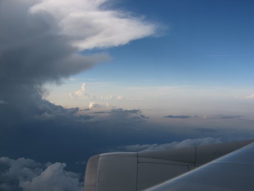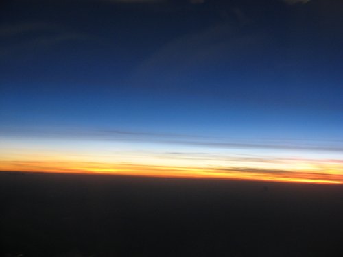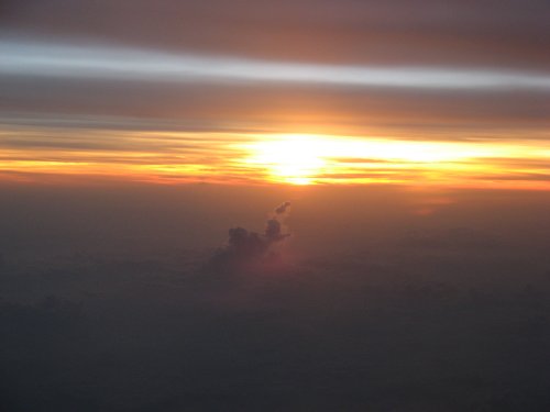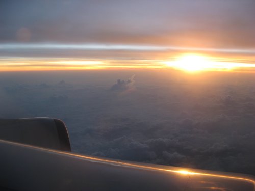 Da sieht man schon mehr von der Sonne. (Ich sitze eigentlich nie am Fenster, deswegen musste ich dieses Mal ausnutzen. Ich dachte immer, Fotos aus Flugzeugfenstern werden automatisch ncihts.)