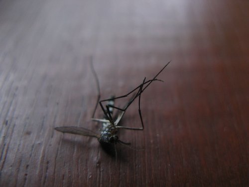 Moskitoleiche. Man hat am Tag pro Person etwa fünf solcher Tierchen ins Jenseits geschickt.