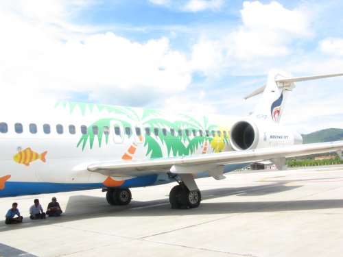 Unser Flugzeug, übrigens mit sehr tollem "Star Alliance" Design und nicht in den bunten Thaifarben. Und man bekommt nicht bei jedem Flug mit Thai Orchideen, wir sie ankündigen, nur wenn man Glück hat. Wir hatten zwei mal keines. Sie wären und weiblichen Fluggästen das schuldig gewesen. Schließlich dürfen wir auch keine Mönche anfassen. :-)