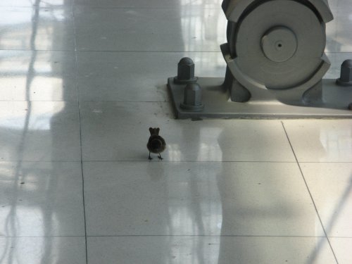 Ein Vogel, davon gab es ganz viele im Flughafen. Es sah ganz so aus, als ob sie irgendwo hinein geflogen sind und nicht mehr herausfinden, aber möglicherweise fliegen die permanent rein und raus. Ich habe sie nicht gefragt.