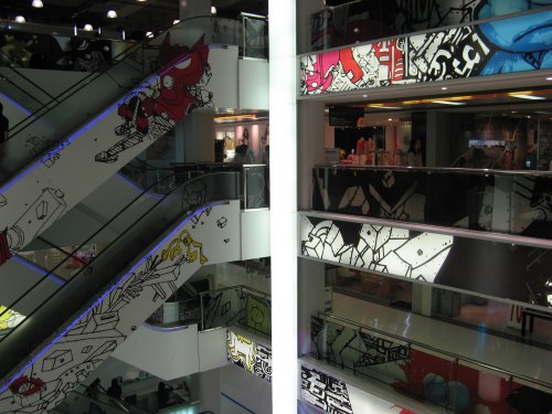Siam Center, Bangkok. eines der Treppenhäuser. Das wird auch immer mal wieder umgestaltet, je nach Saison.