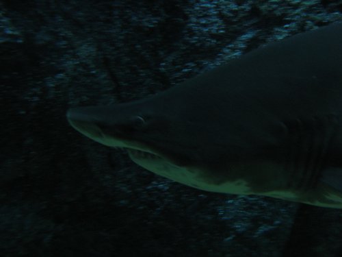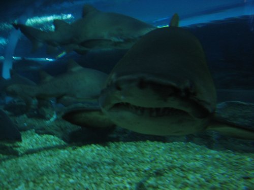 Die Haie schwammen sehr lang und trotzdem ist das das eines der wenigen schärferen Fotos. Blitzen wäre ja blöd gewesen.