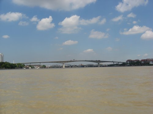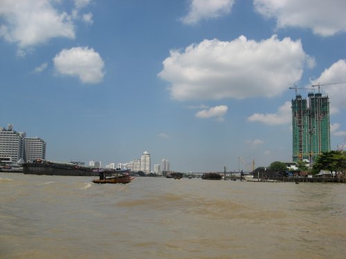 Der wunderbare Fluss durch Bangkok, der Chao Phraya. Besonders schön ist seine Farbe. Hauptsächlich liegt das am Lehm, was aber nicht heißt, dass er nicht schmutzig ist. hier und da kommt fließt schon das ein oder andere Kanalrohr rein und die Toiletten mancher Flussbauten sind ein Loch im Bootssteg. (Ich spreche aus Erfahrung ;-) )