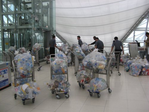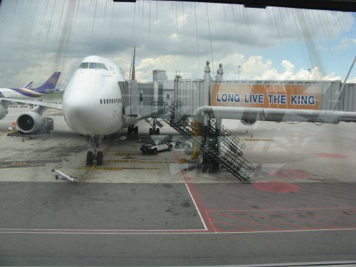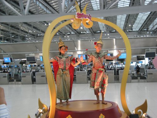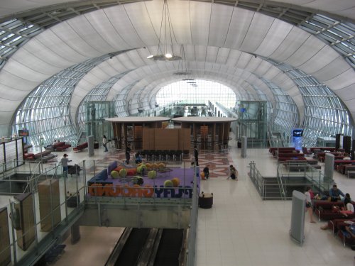 Der neune Flughafen in Bangkok, Suvarnabhumi Airport. Der alte, Don Mueang Airport, steht auch noch, wird aber nur noch für Inlandsflüge genutzt. Der alte war übrigens noch gar nicht soo wahnsinnig veraltet. Das Domestic Terminal war ein wenig gammlig, aber das internationale, war im Vergleich zu anderen Flughafen (*hust* Heathrow *hust*) noch recht gut erhalten.